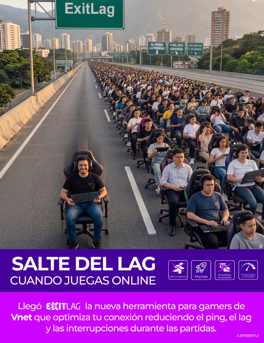 ExitLag es el servicio gamer de Vnet que optimiza tu conexión en tiempo real entre tu PC y los servidores del juego, reduciendo el ping, el lag y las interrupciones durante las partidas.
